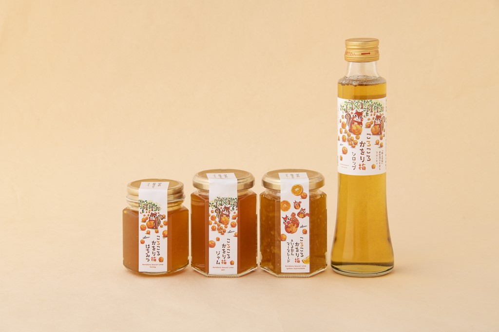 ちさリスのお家では、ジャム、はちみつ、マーマレードに【ころころかをり梅シロップ】が加わり、四種類のラインナップを揃えました。