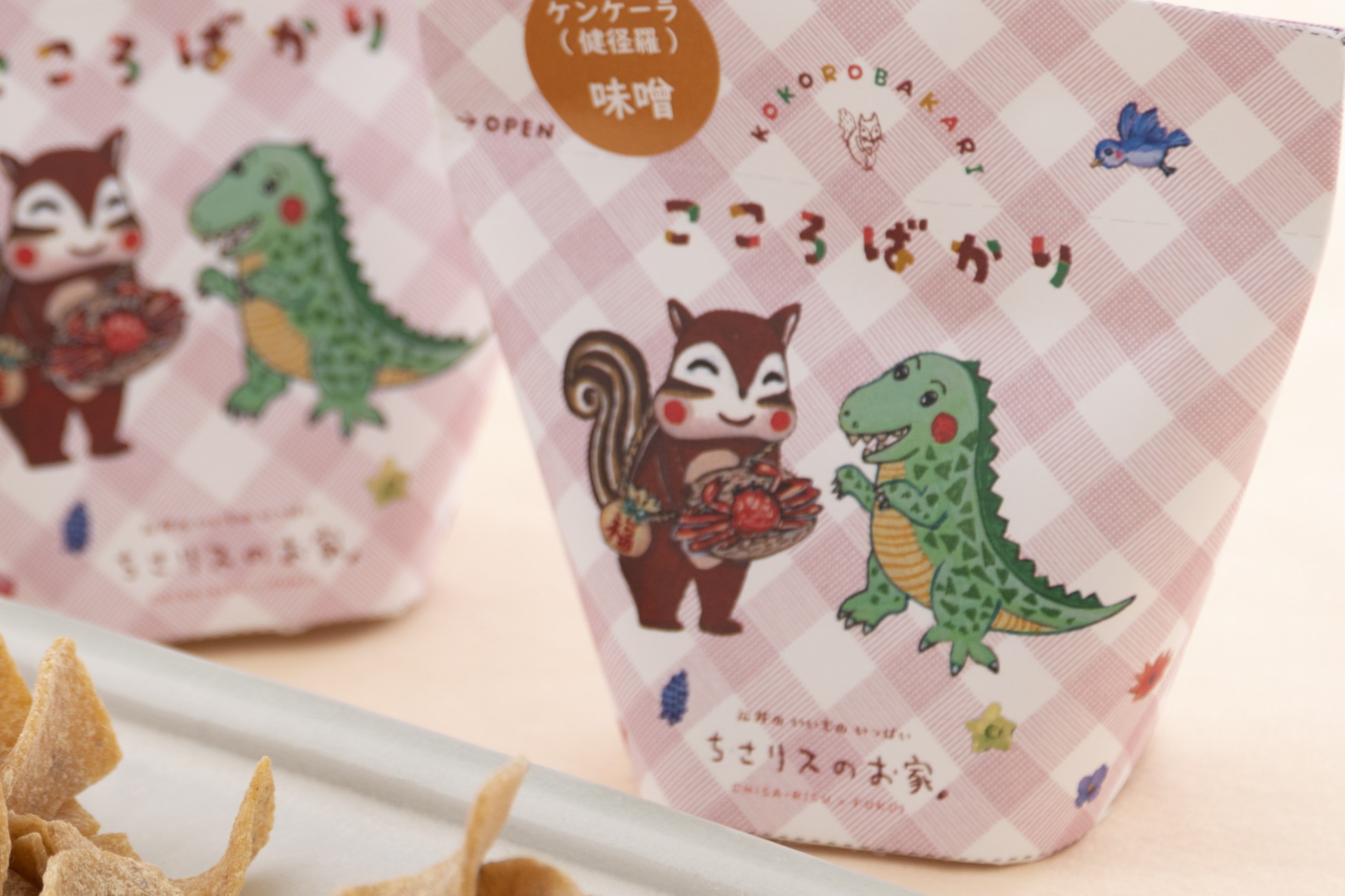 パッケージには、心ばかりの文字と共に、藤岡さん書き下ろしの恐竜とリスの暖かみのあるデザイン。