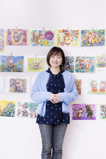 藤岡ちさ氏が描くリス達の世界観溢れる空間が